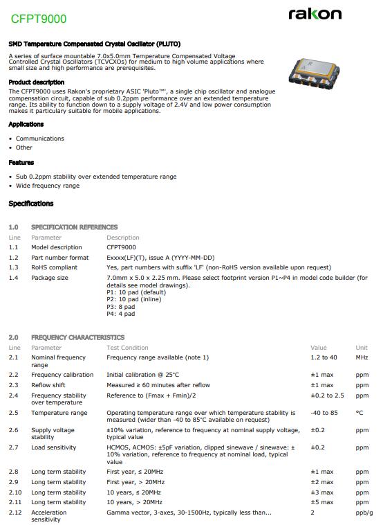 更多>>RAKON晶振,CFPT9000晶振,7050溫補晶振