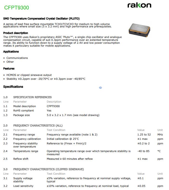 更多>>RAKON晶振,CFPT9300晶振,5032溫補(bǔ)晶振