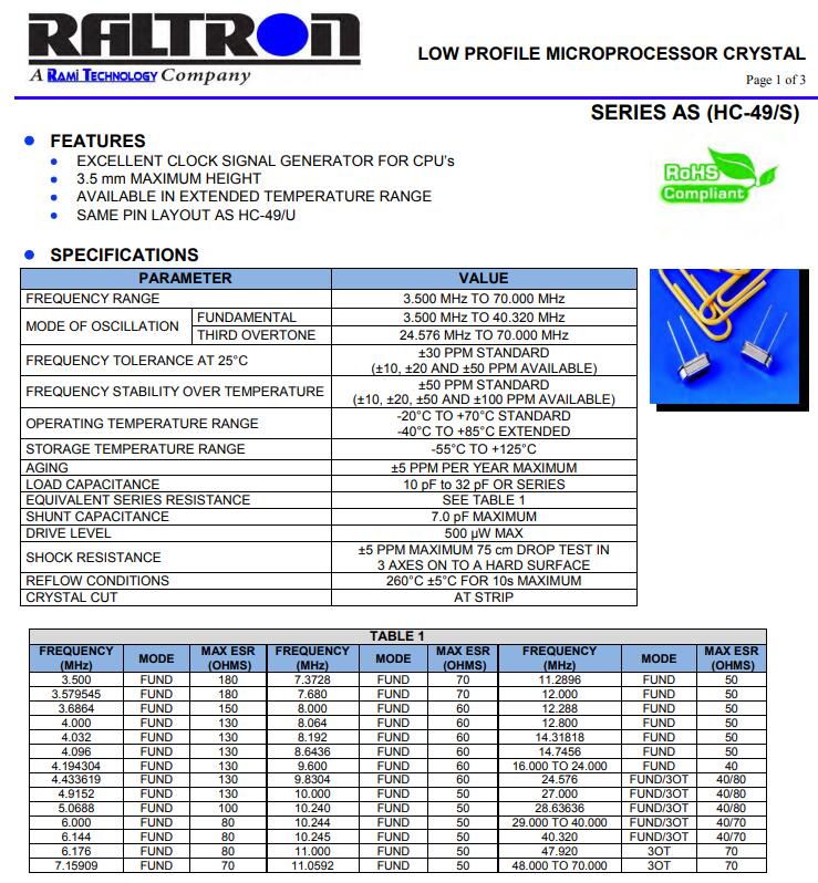 更多>>拉隆晶振,AS插件晶振,HC-49/S晶振