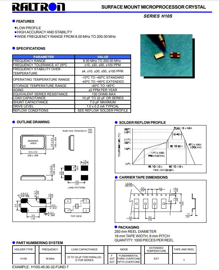 | H10S-14.7456-16-1020-TR | H10S | 14.7456MHz | 6.0 x 3.5mm | ± 10 ppm | ± 20 ppm | 16 pF | -10°C~+60°C |