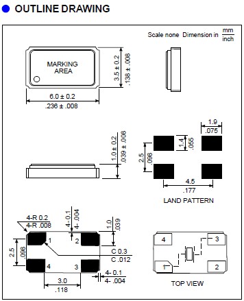 Raltron晶振,H10S-16.384-18-1030-TR,6G無線應(yīng)用晶振尺寸圖