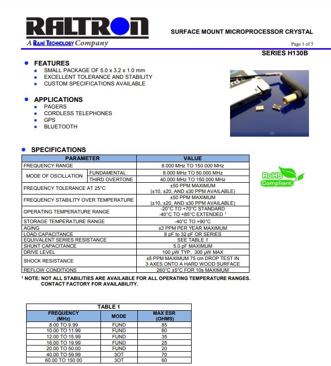 | H130B-18.432-18-EXT-TR | H130B | 18.432MHz | 5.0 x 3.2mm | ± 50 ppm | ± 50 ppm | 18 pF | -40°C~+85°C |