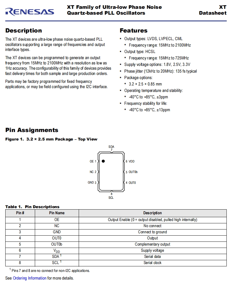 | XTL322200.000000I | Renesas Electronics America Inc | XT | 200 MHz | LVDS | 2.5V | ±3ppm |