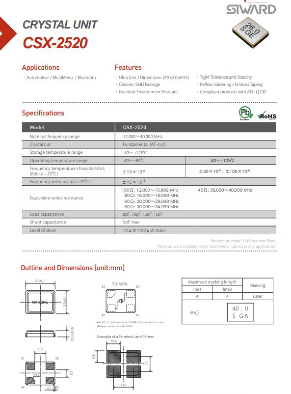 更多>>臺灣希華晶振,CSX-2520晶振,2520石英晶振