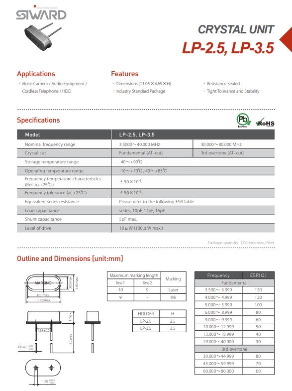 希華晶振,LP-2.5晶振,49插件晶振引腳焊接型石英晶體元件.工廠倉庫長時間大量庫存常用頻點,.高精度的頻率和晶振本身更低的等效串聯(lián)電阻.常用負載電容,49/S石英晶振,因插件型鏡頭成本更低和更高的批量生產能力.主要應用于電視,機頂盒,LCDM和游戲機家用常規(guī)電器數(shù)碼產品等的最佳選擇.符合RoHS/無鉛.