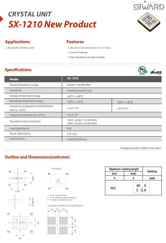 希華晶振,SX-1210晶振,1210迷你型晶振,體積小,焊接可采用自動(dòng)貼片系統(tǒng),產(chǎn)品本身小型,表面貼片晶振,特別適用于有小型化要求的電子數(shù)碼產(chǎn)品市場(chǎng)領(lǐng)域,因產(chǎn)品小型,薄型優(yōu)勢(shì),耐環(huán)境特性,包括耐高溫,耐沖擊性等,在移動(dòng)通信領(lǐng)域得到了廣泛的應(yīng)用,晶振產(chǎn)品本身可發(fā)揮優(yōu)良的電氣特性,滿足無鉛焊接的高溫回流溫度曲線要求.