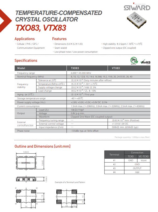 更多>>進口希華晶振,VTX83晶振,5032壓控溫補晶振