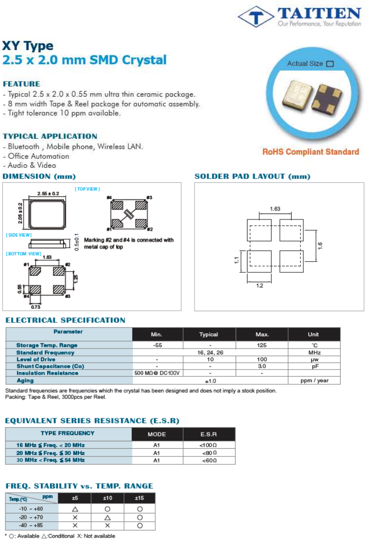 | XYCCCCNANF-19.200000 | Taitien | XY | 19.2MHz | ±20ppm | ±20ppm | 10pF |