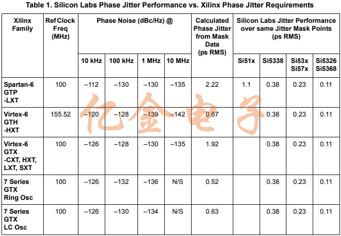 表1. Silicon Labs的相位抖動性能與Xilinx的相位抖動要求