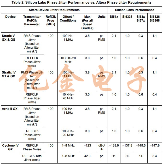 表2. Silicon Labs的相位抖動性能與Altera的相位抖動要求
