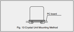 (3)安裝引線型晶振晶體單元時,我們建議設備應與PC聯(lián)系電路板和焊接方式,以防止疲勞和由于機械共振引起的引線斷裂(見圖。13)。