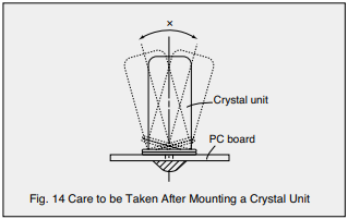 (4)在PC板上安裝晶體單元后,移動如圖14所示的單元使支架基底玻璃破裂導致特性惡化。別動了這樣的水晶單元。
