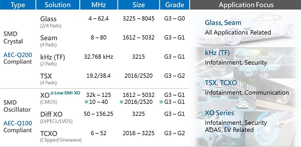 依據(jù)汽車產(chǎn)業(yè)全面朝向自動駕駛等級3到5的發(fā)展趨勢,車用電子前瞻技術(shù)已完全規(guī)劃性導入于汽車系統(tǒng)設(shè)計,例如智能駕駛座艙,車載通訊,主被動安全系統(tǒng),電動車輛等.一直以來臺灣晶技全心投入車用電子各項應用領(lǐng)域發(fā)展所需的車規(guī)級頻率組件,并極力追求產(chǎn)品穩(wěn)健設(shè)計,高可靠度以及零風險管理.