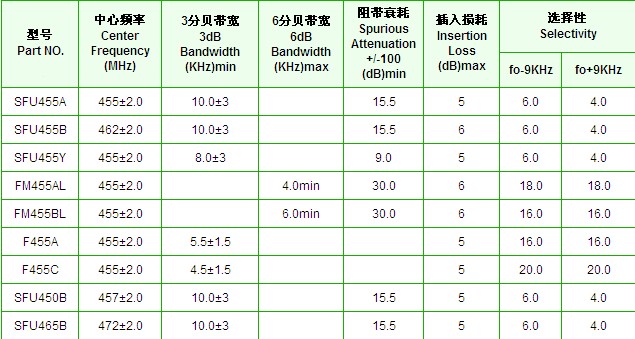 LT455B陶瓷濾波器規(guī)格