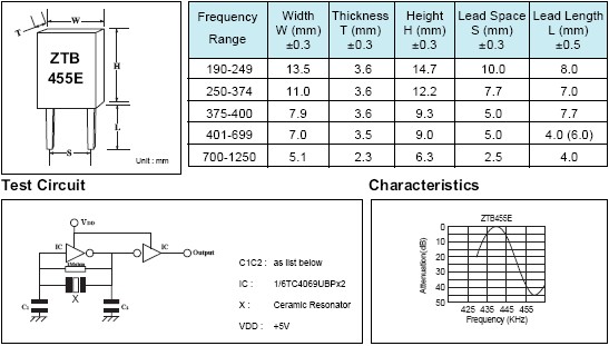 ZTB455E陶瓷諧振器規(guī)格