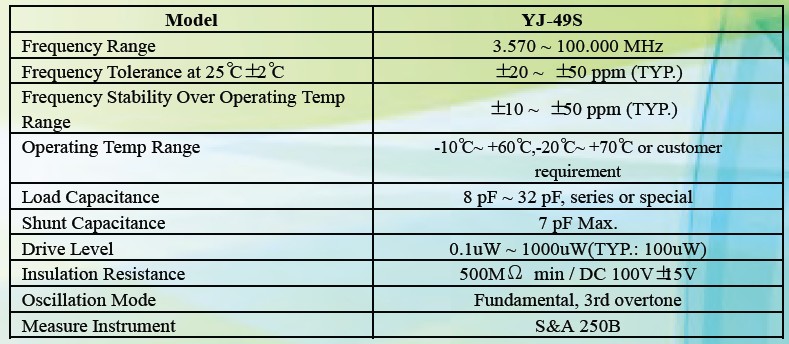 石英晶振49S規(guī)格圖