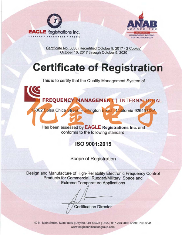 FMI晶振ISO9001質(zhì)量體系認(rèn)證