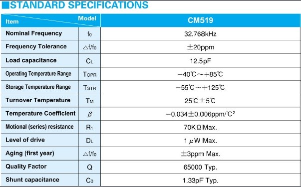 西鐵城晶振CM519|超小型、薄型、質(zhì)地輕的表面貼片音叉型晶體諧振器、具備優(yōu)良的耐熱性、耐環(huán)境特性、在辦公自動化金屬外殼的使用使得產(chǎn)品在封裝時(shí)能發(fā)揮比陶瓷外殼更好的耐沖擊性。