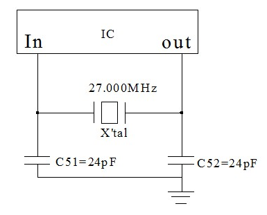 2.理論值負載電容計算方式如下,由C51 C52計算串聯(lián)電容后加上離散電容等于實際的負載電容,雜散電容內(nèi)含PCB Layout、芯片電極等等因素造成.