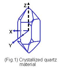 石英是由硅原子和氧原子組合而成的二氧化硅(Silicon Dioxide, SiO2), 以32點(diǎn)群的六方晶系形成的單結(jié)晶結(jié)構(gòu)﹝圖一﹞.單結(jié)晶的石英晶體結(jié)構(gòu)具有壓電效應(yīng)特性, 當(dāng)施加壓力在晶體某些方向時(shí), 垂直施力的方向就會(huì)產(chǎn)生電氣電位. 相對(duì)的當(dāng)以一個(gè)電場(chǎng)施加在石英晶體某些軸向時(shí), 在另一些方向就會(huì)產(chǎn)生變形或振動(dòng)現(xiàn)象. 掌握單結(jié)晶石英材料的這種壓電效應(yīng), 利用其發(fā)生共振頻率的特性, 發(fā)揮其精確程度作為各類(lèi)型頻率信號(hào)的參考基準(zhǔn), 就是水晶震蕩器的設(shè)計(jì)與應(yīng)用. 因?yàn)槭⒕w具有很高的材料Q值,所以絕大部份的頻率控制組件,如共振子及振蕩器,都以石英材料為基礎(chǔ). 以石英為基礎(chǔ)的頻率控制組件可以依其壓電振動(dòng)的屬性, 可以分為體波(bulk wave)振動(dòng)組件及表面聲波(surface acoustic wave)振動(dòng)組件.