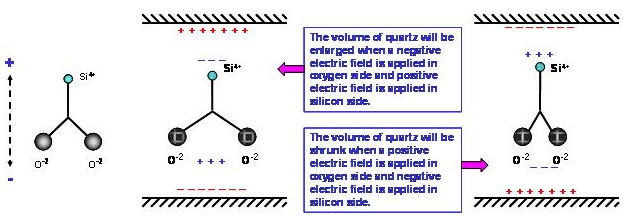 石英是由硅原子和氧原子組合而成的二氧化硅(Silicon Dioxide, SiO2), 以32點群的六方晶系形成的單結晶結構.單結晶的石英晶體結構具有壓電效應特性, 當施加壓力在晶體某些方向時, 垂直施力的方向就會產生電氣電位. 相對的當以一個電場施加在石英晶體某些軸向時, 在另一些方向就會產生變形或振動現象. 掌握單結晶石英材料的這種壓電效應, 利用其發(fā)生共振頻率的特性, 發(fā)揮其精確程度作為各類型頻率信號的參考基準, 就是水晶震蕩器的設計與應用. 因為石英晶體具有很高的材料Q值,所以絕大部份的頻率控制組件,如共振子及振蕩器,都以石英材料為基礎. 以石英為基礎的頻率控制組件可以依其壓電振動的屬性, 可以分為體波(bulk wave)振動組件及表面聲波(surface acoustic wave)振動組件. 體波振動組件如石英晶體共振子, 石英晶體濾波器及石英晶體振蕩器, 表面波振動組件如表面波濾波器及表面波共振子.
