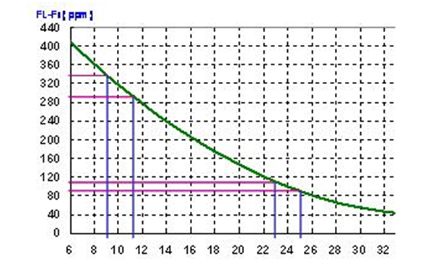 (左圖中)CL=24 pF 時(shí)的頻率敏感度是10 ppm/pF, 及CL=10 pF時(shí)的頻率敏感度是20 ppm/pF. 在并聯(lián)線路中, 負(fù)載電容越小, 頻率對負(fù)載電容變化的敏感度越高. 相反的, 負(fù)載電容越大, 頻率對負(fù)載電容變化的敏感度越低. 這就是石英晶體共振子用于VCXO線路上時(shí), 線路設(shè)計(jì)上會選用較小負(fù)載電容. 反之, 在要求較準(zhǔn)確的頻率信號時(shí), 線路設(shè)計(jì)上會選用較高的負(fù)載電容.