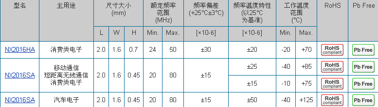 | 頻率公差 | Max. ±25 ×10-6 | Max. ±50 ×10-6 | Max. ±100 ×10-6 | |
