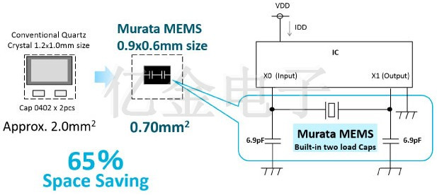 32.768kHz MEMS諧振器采用晶圓級(jí)芯片規(guī)模封裝(WLCSP)使用在與由相同材料制成的半導(dǎo)體IC芯片安裝時(shí)具有高親和力的硅材料.這使得村田晶振能夠嵌入IC中.還可以支持傳遞模塑和引線鍵合安裝.