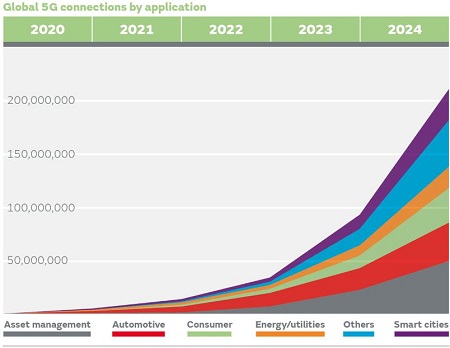 5G—海量物聯(lián)網(wǎng)將可能占5G蜂窩物聯(lián)網(wǎng)連接的一半以上.這是由于在較大應(yīng)用領(lǐng)域(如資產(chǎn)管理,能源和公用事業(yè)以及智慧城市)中;術(shù)語”海量物聯(lián)網(wǎng)”恰當(dāng)?shù)孛枋隽穗S著5G的實施而出現(xiàn)的新型物聯(lián)網(wǎng)設(shè)備的巨大發(fā)展.4GLPWA技術(shù)的IMT-2020標(biāo)準(zhǔn)為每平方公里60000多臺設(shè)備,而相同大小覆蓋范圍內(nèi)的5G最小連接密度為100萬臺設(shè)備.
