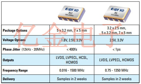 XL和XU高性能差分石英晶體振蕩器系列