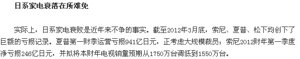 這次釣魚(yú)島事件與之前簽訂的《馬關(guān)條約》密切相關(guān),日本一次次潛入中國(guó)領(lǐng)土釣魚(yú)島,直至2012年9月3日日本提出購(gòu)買該島嶼中方堅(jiān)決反對(duì),目前是怎樣中國(guó)是否達(dá)成協(xié)議?中國(guó)的領(lǐng)土作為中國(guó)人怎么會(huì)同意自己的東西分給欺凌自己的敵人,今日在網(wǎng)上看到一篇關(guān)于釣魚(yú)島引發(fā)的事件,日系家電上月起在華銷量全線大跌釣魚(yú)島事件成衰退催化劑,蘇寧國(guó)美一直銷售夏普,索尼,松下,東芝等日資彩電,據(jù)調(diào)查近月銷售明顯下滑,.jpg)