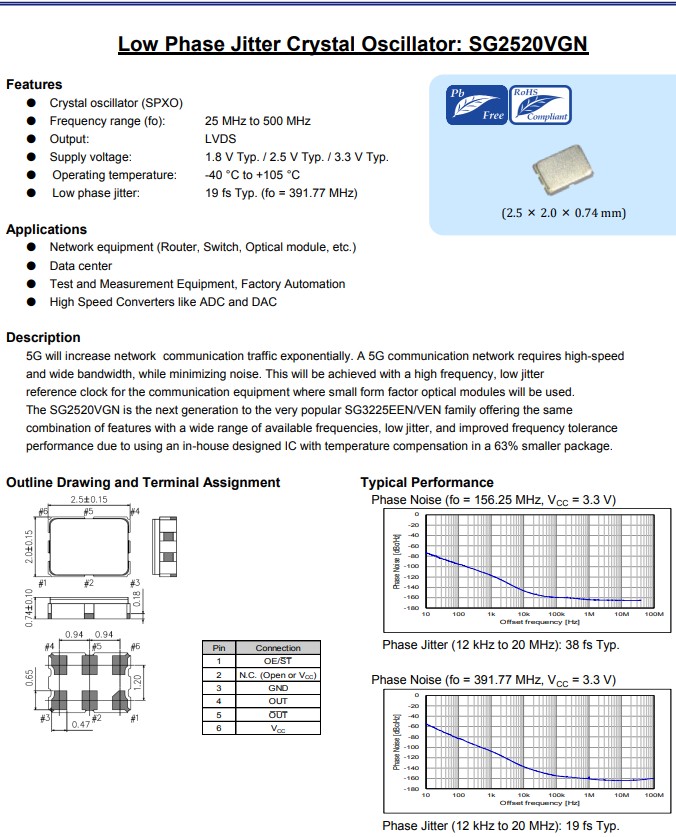 SG2520VGN差分晶振X1G005901000215適用于5G通信網(wǎng)絡(luò)設(shè)備應(yīng)用