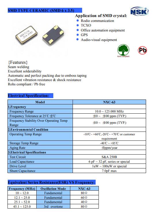 更多>>NSK晶振,NXC-63晶振,6035四腳晶振